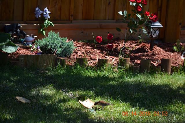 One of the many things I enjoy is watching the birds and butterfly fly around our backyard. So to attract more of them, I planted butterfly bushes and also put bird's feeder under the trees. we have a porch at the back so when we are sitting out there, it's nice to watch the birds eat.